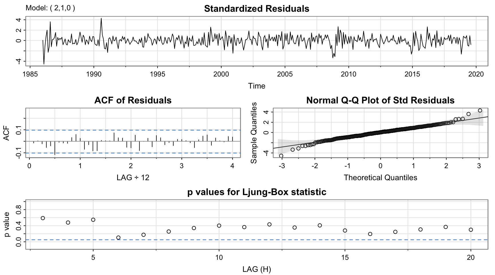 ## sigma^2 estimated as 0.006949: log likelihood = 429.41, aic = -850.81
