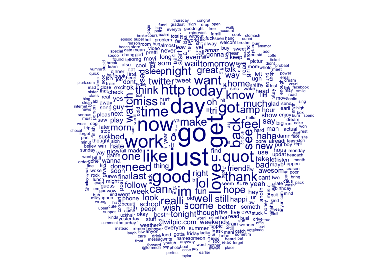 ## [15] "music" "video" "haha" "realli" "good" "smile"